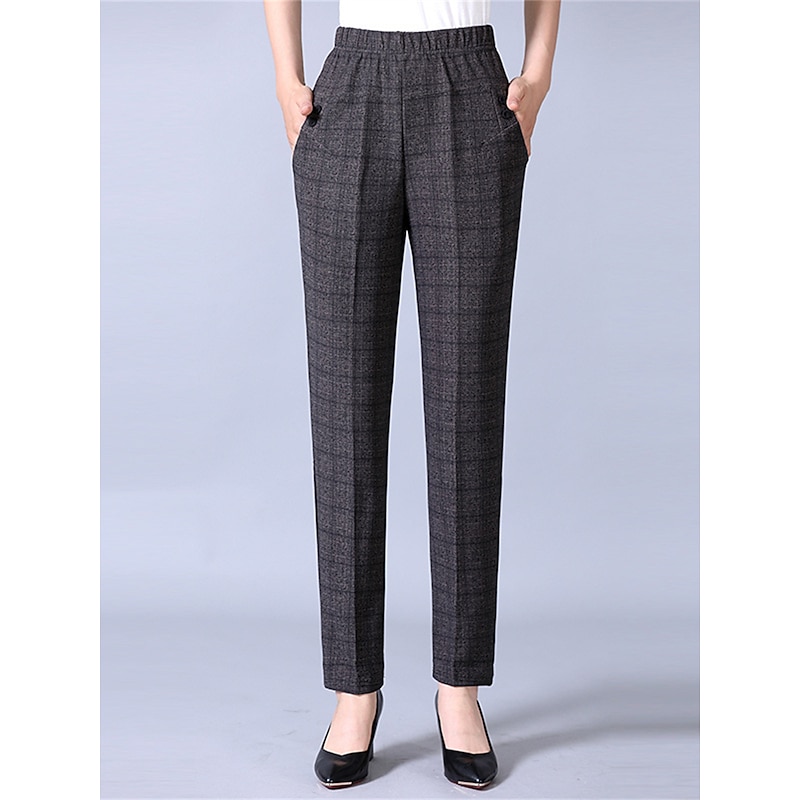 More information about Women's Dress Pants Fleece Pants Pants Trousers Fashion Streetwear Work Full Length High Waist Plaid Striped Pocket Elastic Waist Print Comfortable Breathable Micro-elastic Office / Career Street