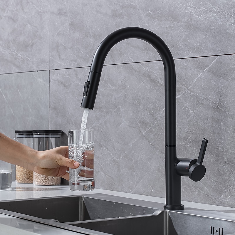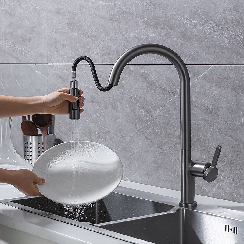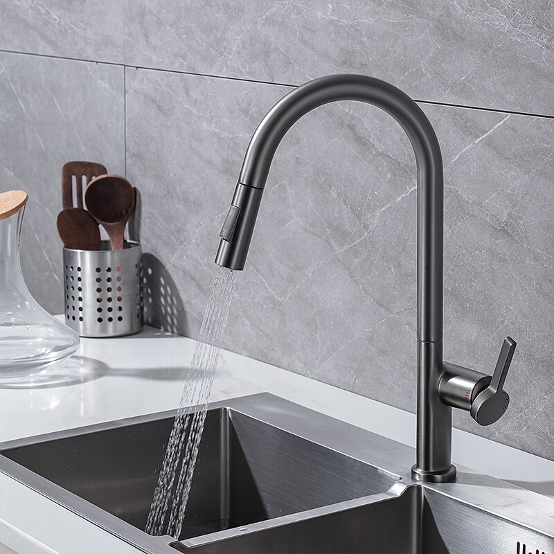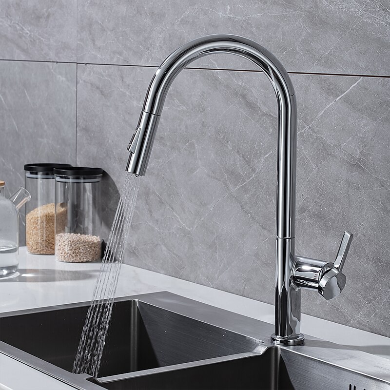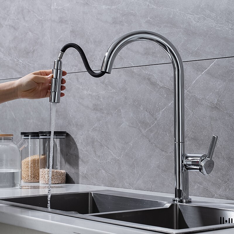 Why Choose Kitchen Faucet with Pull-out Spray,Single Handle One Hole Brass High Arc 2-modes 360°Rotatable present-day Contemporary Kitchen Taps?