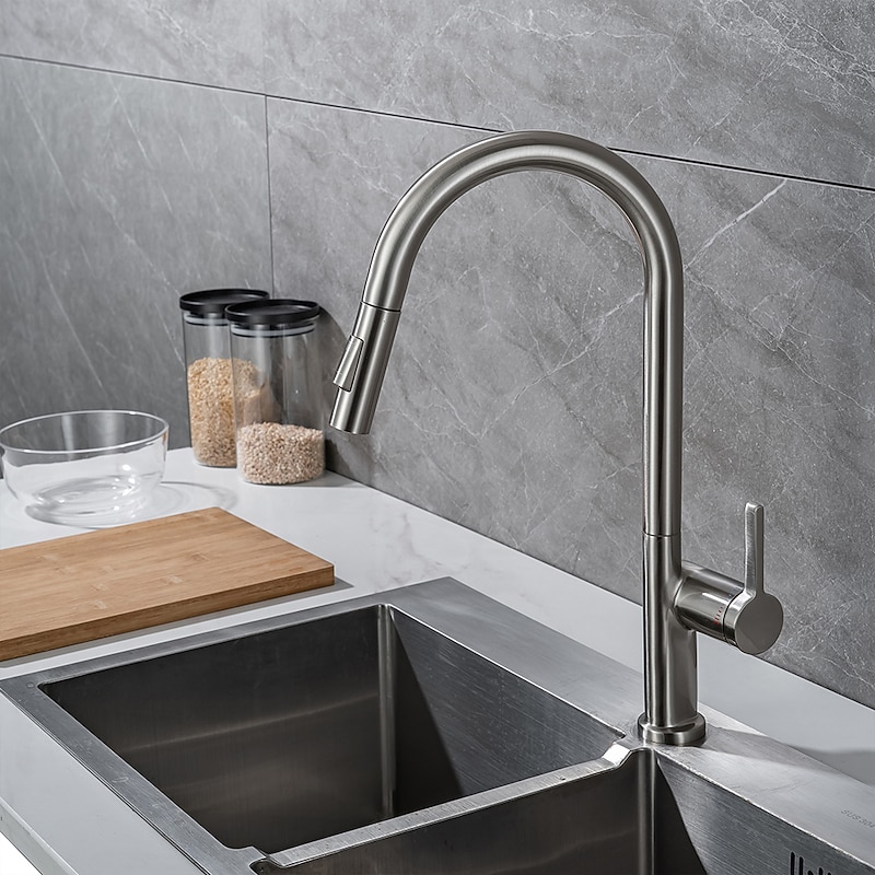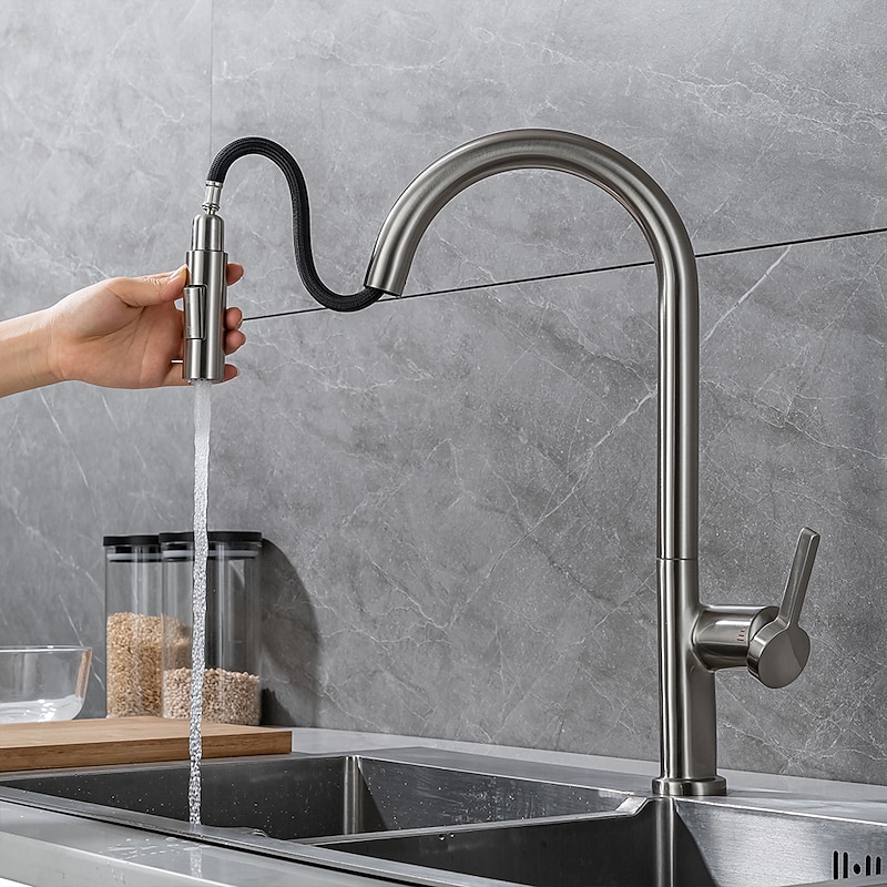 This Kitchen Faucet with Pull-out Spray,Single Handle One Hole Brass High Arc 2-modes 360°Rotatable up-to-date Contemporary Kitchen Taps combines elegant design with practical functionality. Every detail has been carefully considered to ensure you get the best possible experience. The first-class construction means this product will serve you well for years to come.