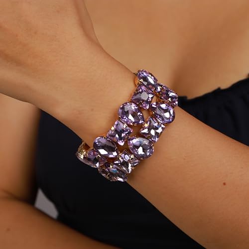 YERTTER Punk Layered Colorful Square Drop Crystal Stretchable Bracelet Hip Hop Bracelet Full Diamonds Hand Stretchable Elastic Bracelet Bangle for Women 4