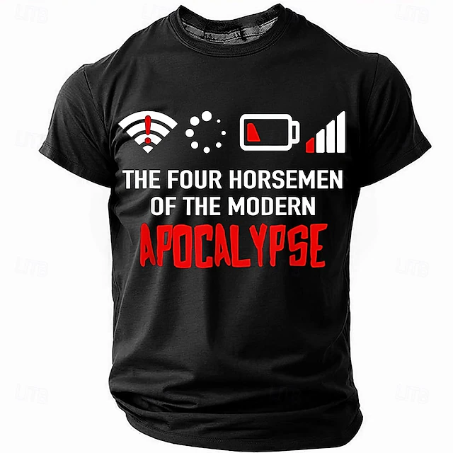 HOT ! Men's Funny Graphic T-Shirt: Modern Apocalypse Tech Frustrations with Wi-Fi, Low Battery & No Signal Humor Tee