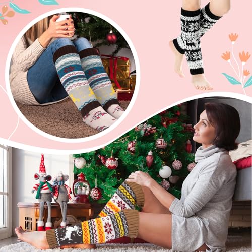 SATINIOR 6 Pairs Leg Warmers for Women Warm Winter Long Boot Socks Knit Thermal Sleeve Cable Socks for Party 3