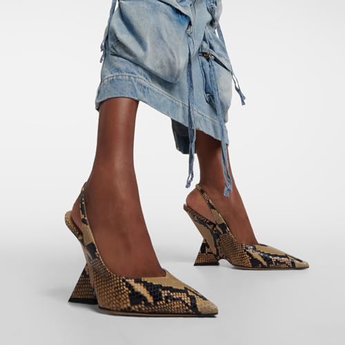 Women's Snakeskin Slingback Heels with Wedge Heel Closed Pointed Toe Backstrap Slip On Pumps Fashion Party Dress Shoes Ladies 1