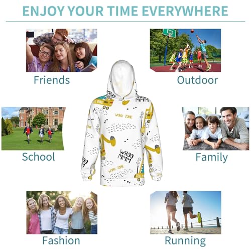 Dinosaur on Excavator Kids Pullover Hoodies Boys Sweatshirts Girls Athletic Clothes with Pocket 5