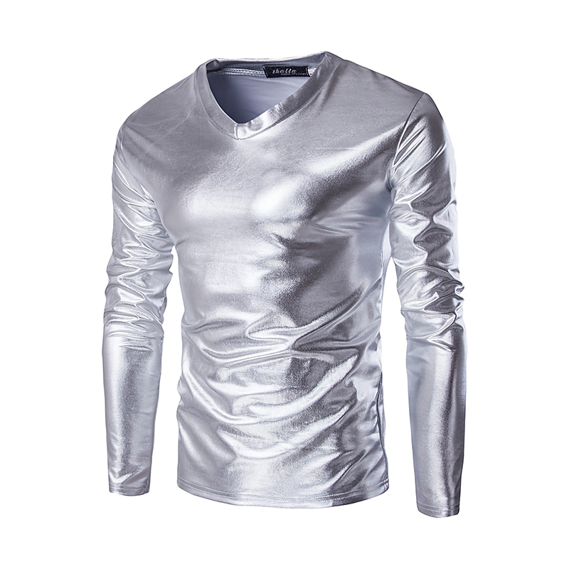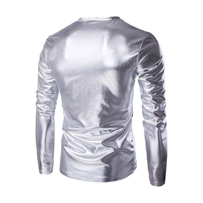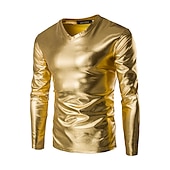 More information about Men's T Shirt Long Sleeve Shirt Long Sleeve Crew Neck Spring & Summer Plain Lightweight Slim Fit Big and Tall Bronzing Vacation Casual Holiday Silver Black Gold Top Tee for Men