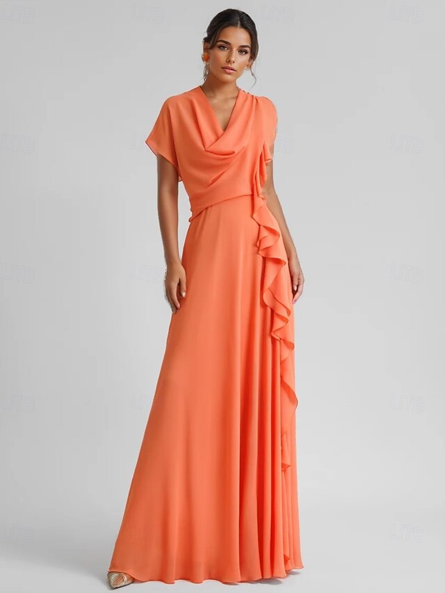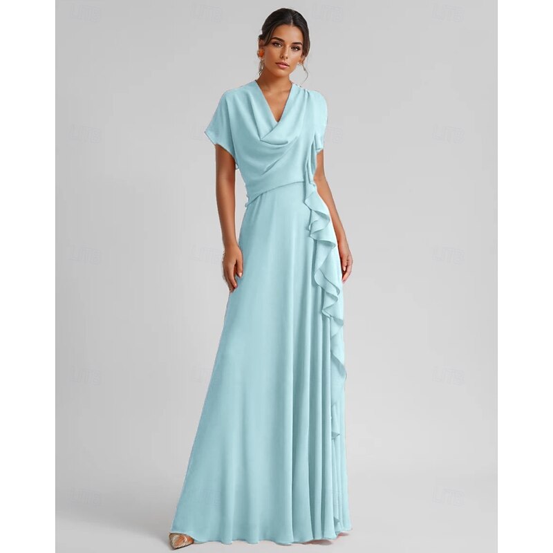$129.99 - A-Line Cocktail Elegant Wedding Guest Dress Formal Floor Length 3/4 Length Sleeve V Neck Chiffon with Ruched Ruffles 2025. Shop for cheap Formal / Black Tie online? Buy at lightinthebox.com on sale today!