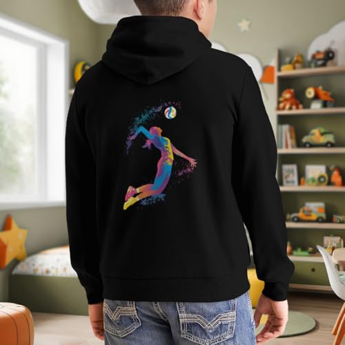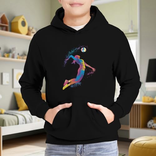 HOT ! Kids Tie Dye Silhouette Splash Art Of Volleyball Player Boys Girls Lightweight Kangaroo Pocket Fleece Hoodies