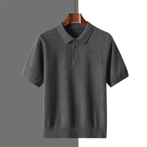 Men’S Wool Blend Short Sleeve Turn-Down Collar Knit Pullover Thin Fit Casual Sweater 7