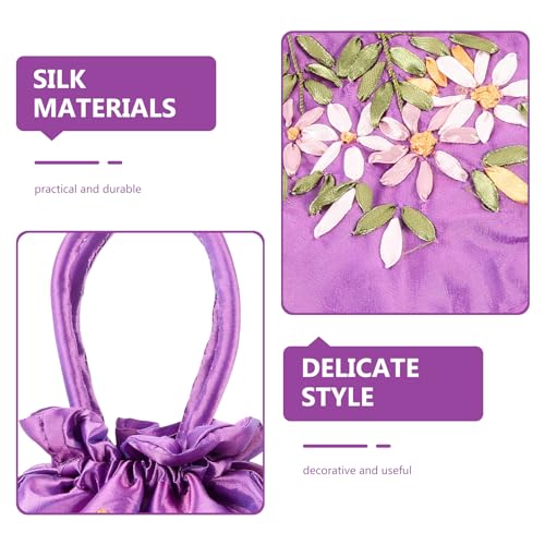VALICLUD Small Bag Tote Bag Hand Drawstring Purse with Handle Drawstring Tote Purse Embroidered Women Embroidered Miss Silk Folk-custom Purple 3