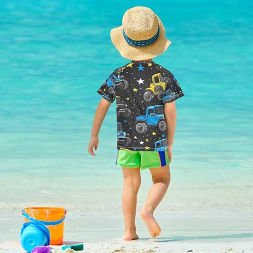 Kids Swimsuit Truck Monster Car Star Colorful Sunscreen T-Shirts Swimwear Sets UPF 50+ 3