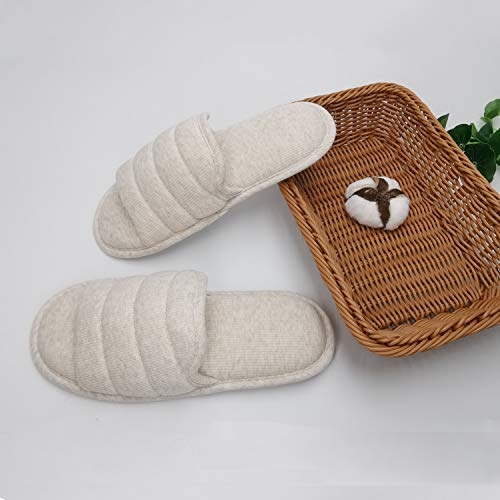 • ▲BREATHABLE AND COMFY:Environmentally-friendly cotton fabric,sweat-absorbent to keep the feet dry,especially suitable for sweaty feet. Elastic knitted fabric fits for different sizes,pleasant to wear.▲THICK MEMORY FOAM: Thickened rebound sponge padding,massage the soles of feet,make the body relaxed after work. ▲LIGHTWEIGHT: The slippers are light and effortless to carry.They are the must-have product for cooling off in hot summer.