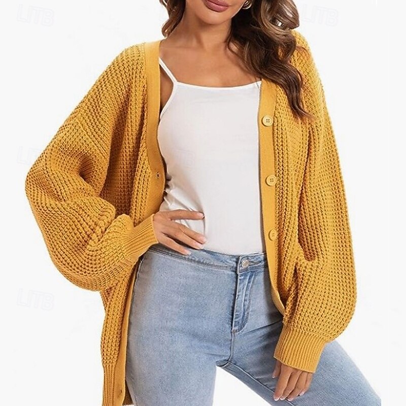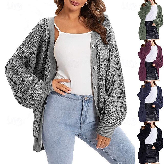 Highlights 1. Stay cozy and stylish throughout the Fall and Winter seasons with this Women's Long Sleeve Cardigan. 2. It features a Regular Fit and Ribbed knit style for added comfort and durability. 3. The Solid Color pattern adds a classic touch to this must-have sweater.