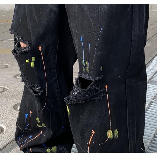More information about Baggy Jeans Men Distressed Casual Wide Leg Jeans Men Splatter Paint Emo Streetwear for Skater Denim Pants