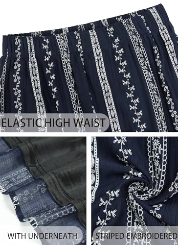 Herou Women A Line Skirt Boho Mesh Maxi Skirts High Waist Striped Embroidery-Like Pattern Long Skirts with Underneath 5