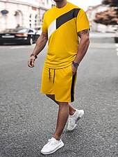 More information about Men's 2 Pieces Outfits T-Shirt and Drawstring Shorts Set Short Sleeve Crewneck Summer Color Block Fashion Sport Casual 2 Piece Vacation Casual Daily Wear Black Yellow Green Top Tee for Men