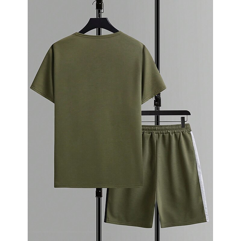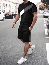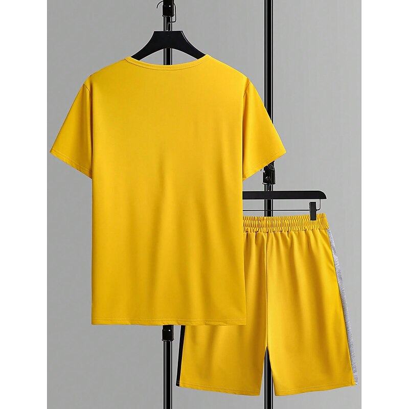 Men's 2 Pieces Outfits T-Shirt and Drawstring Shorts Set Short Sleeve Crewneck Summer Color Block Fashion Sport Casual 2 Piece Vacation Casual Daily Wear Black Yellow Green Top Tee for Men 15