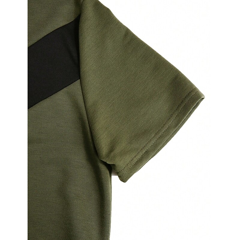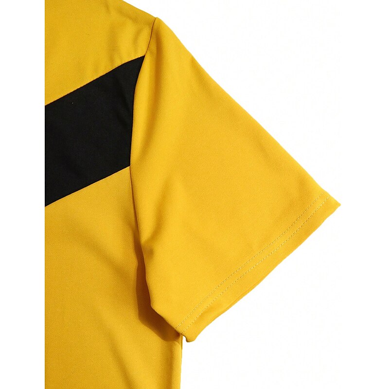 Men's 2 Pieces Outfits T-Shirt and Drawstring Shorts Set Short Sleeve Crewneck Summer Color Block Fashion Sport Casual 2 Piece Vacation Casual Daily Wear Black Yellow Green Top Tee for Men 5