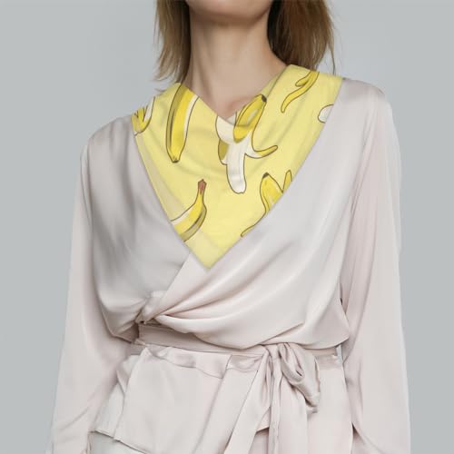 HOT ! KOBLEN Banana Fruit Pattern Silk Scarf 23.6x23.6 Inch Square Neck Scarf for Women Breathable Lightweight Neckerchief Silk Head Scarf Hair Wrap