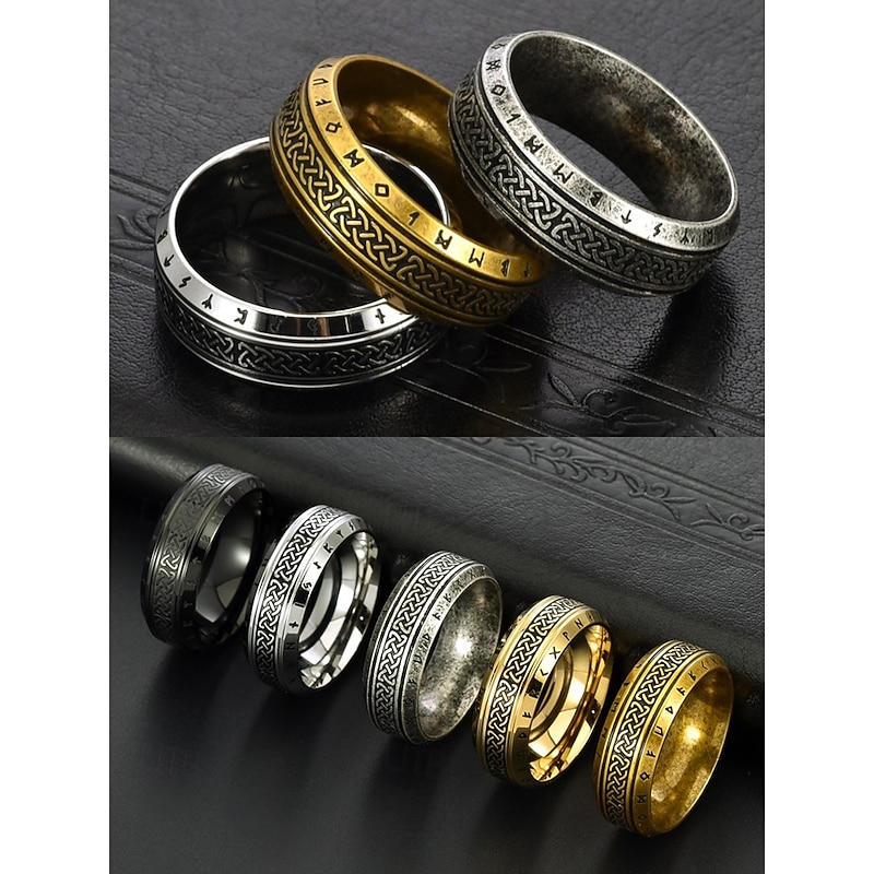MXN $214 - Men's Viking Stainless Steel Ring with Nordic Runes and Celtic Knot Design, Vintage Norse Style Band for Bikers and Cosplay 2025. Shop for cheap Men's Jewelry online? Buy at lightinthebox.com on sale today!