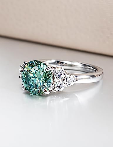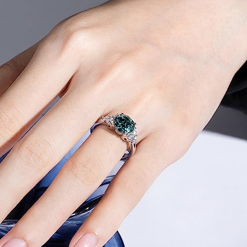 CannyCat 3.0 carat Fancy Vivid Blue Green Moissanite Ring 3.6 cttw Moissanite Engagement Rings for Women VVS D-color Certified Moissanite Anniversary Wedding Cluster Ring Platinum-Plated Silver Band 6