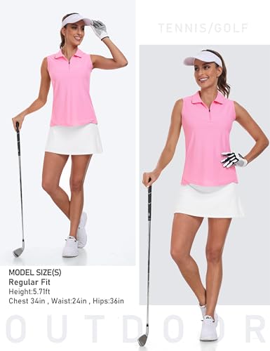 • [Stylish Classic Design] You will look fashionable while being active.These zip up sleeveless golf shirts with collar will make you shiny among the girls.
