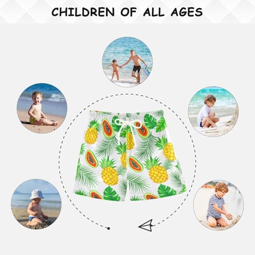 DOMIKING Papaya Fronds Pineapple White Toddler Boys' Swim Trunks Mesh Lining Swim Shorts for Boys Kids Adjustable Waist 4