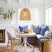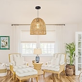 More information about Country Vintage Pendant Light, Metal Braided Rope, Bamboo Weaving, 25cm Height, Warm White/White Light, E26 E27, Adjustable Chain