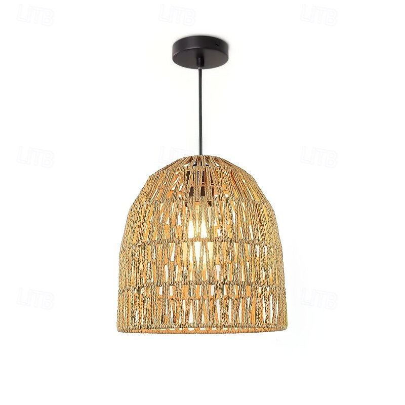 HOT ! Country Vintage Pendant Light, Metal Braided Rope, Bamboo Weaving, 25cm Height, Warm White/White Light, E26 E27, Adjustable Chain