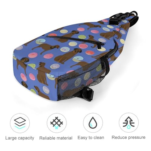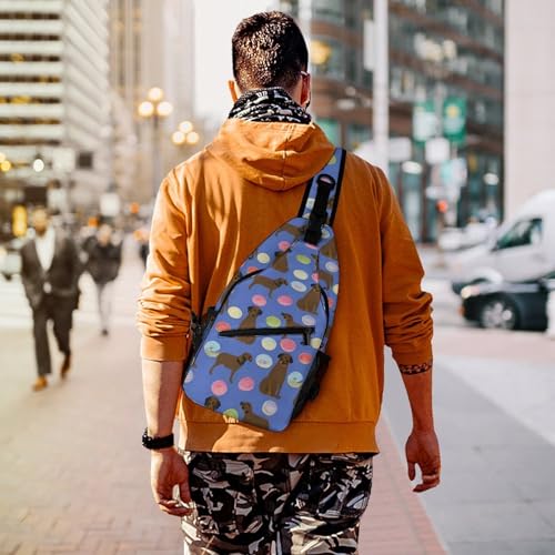 Cute Sling Bag Backpack, Backpacking, Abrador Retriever Dogs Pet Chocolate Labs Donuts Art Crossbody Rucksack, Camera Case, Gym Crossbody Sack Satchel Outdoor Hiking Bag for Men Women