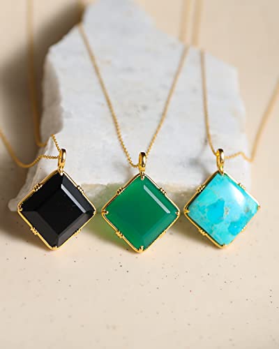 YoTreasure 14K Gold Over 925 Silver Green Onyx Black Onyx Blue Mohave Turquoise Chain Pendant Necklace Jewelry 4