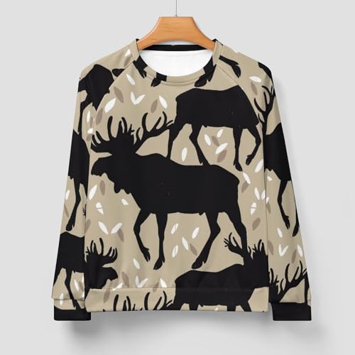 HOT ! VOSERY Moose Antlers Elk Vintage Sweatshirt for Men, Crewneck Mens Hoodies, Long Sleeve Pullover Sweaters Casual Tops