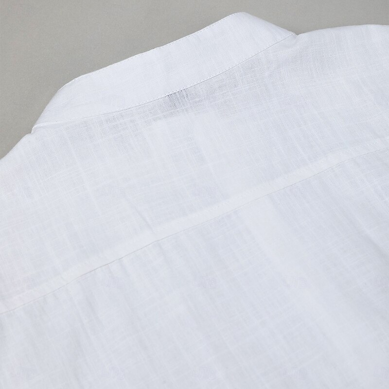 Men's Shirt Linen Shirt Summer Shirt Beach Wear Band Collar Shirt Button Up Shirt Plain Vacation Casual Black White Orange Gray Short Sleeve Mandarin Collar Summer Clothing Apparel 9
