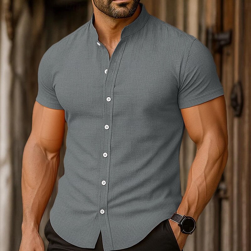 Men's Shirt Linen Shirt Summer Shirt Beach Wear Band Collar Shirt Button Up Shirt Plain Vacation Casual Black White Orange Gray Short Sleeve Mandarin Collar Summer Clothing Apparel 1