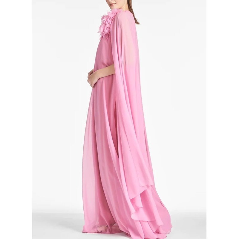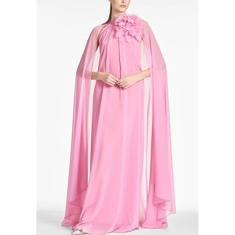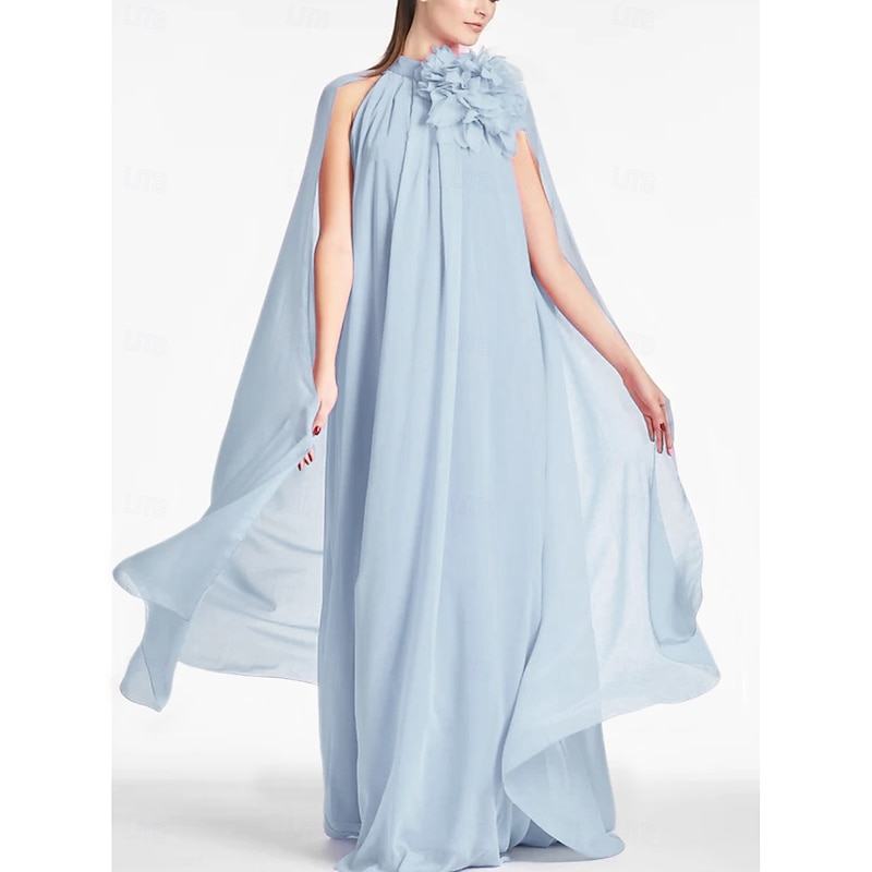 More information about Beach Wedding A-Line Evening Gown Elegant Dress Formal Prom Floor Length Sleeveless Jewel Neck Chiffon with Shouder Flower