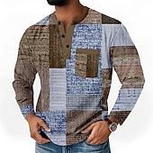 More information about Men's Patchwork Henley Shirt T shirt Tee Long Sleeve Retro Vintage Casual Casual Spring Fall Dark Brown Blue Green Henley Henley T-Shirt