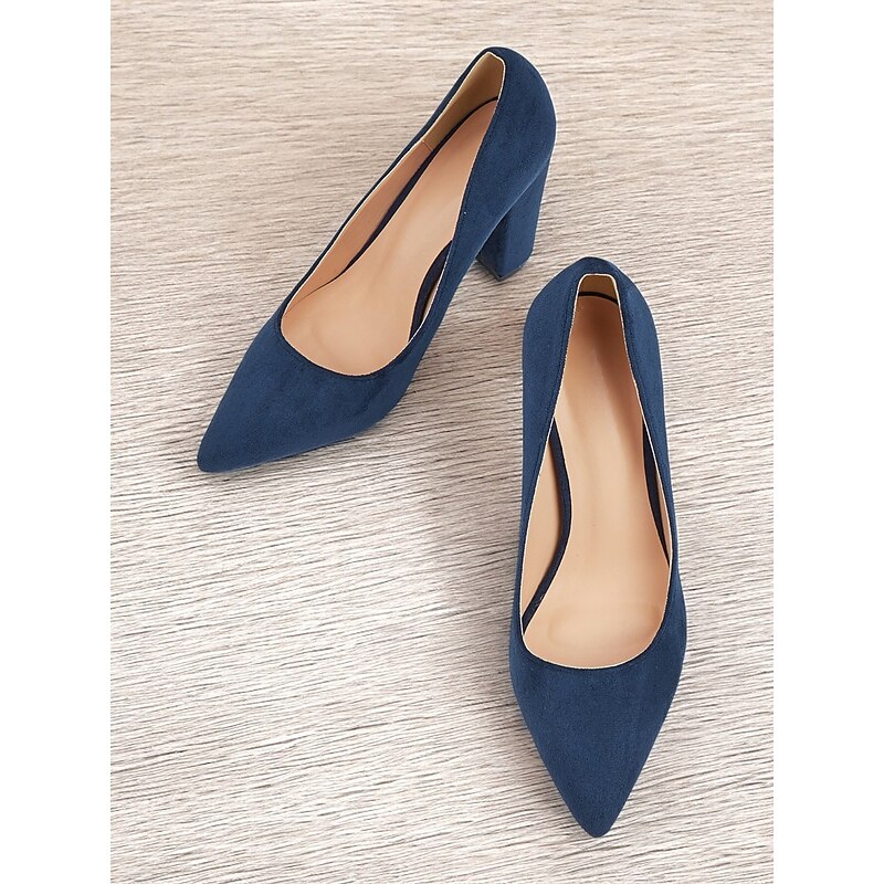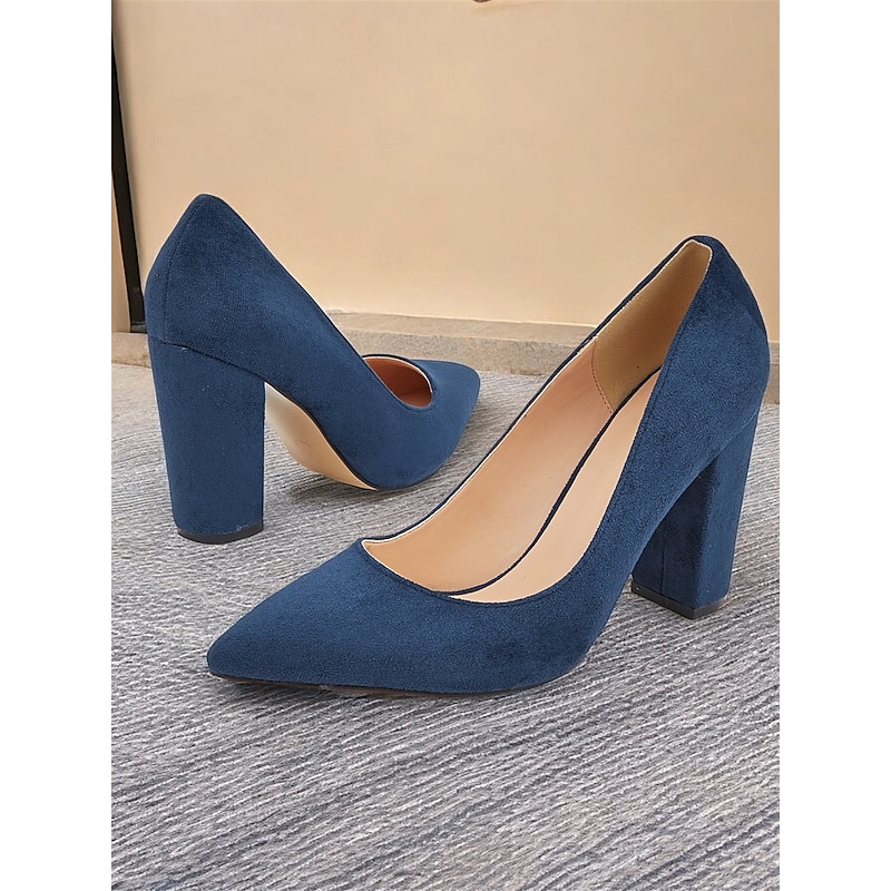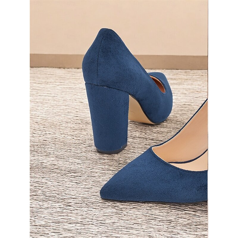 Highlights [Fabric] Experience the luxurious feel of exquisite suede, perfect for adding a touch of sophistication to any look. The rich navy blue color and velvety texture provide a plush, elegant appearance that complements a variety of outfits. [Style] These classic pointed toe high heels offer a sleek silhouette, enhancing your overall look with a fashionable edge. The chunky block heel brings both stability and comfort, making these heels suitable for long hours of wear, while maintaining a chic aesthetic. [Design Highlights] The timeless design is enhanced with a smooth inner lining for comfort and a robust block heel that ensures balance. The pointed toe design elongates the foot, offering an elegant and sophisticated touch. [Occasions] Ideal for both professional settings and festive evenings, these heels are versatile enough to transition from the office to an evening out. Whether it's a corporate meeting or a night out with friends, these shoes add an element of charm and style. [Size Notice] Available in a wide range of sizes from US6 to US11, these heels offer a standard fit, ensuring you can comfortably select your usual size.