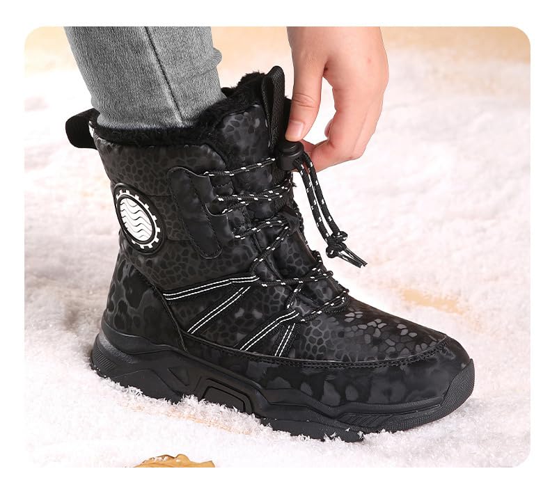 Boys/Girls Thickened Warm Snow Boots Insulated Faux Fur Lined Water-Resistant Non-Slip Winter Outdoor Hiking Boots with Drawstring Medium boots 3