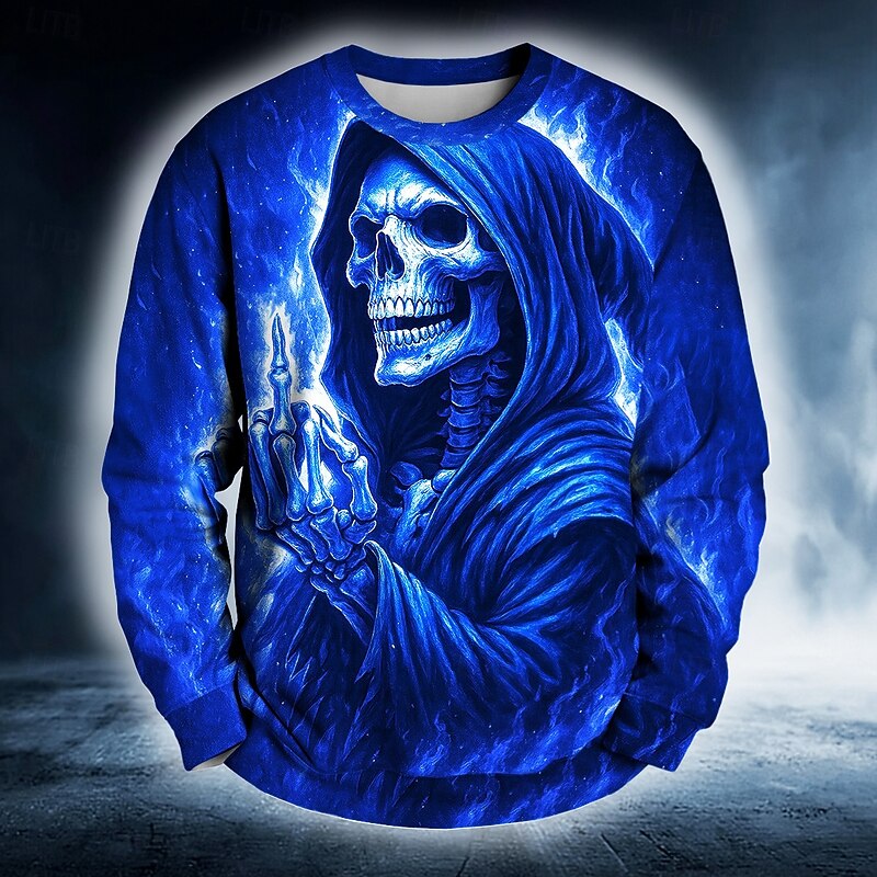 Halloween Men's Devil Reaper Sweatshirt Punk Party Crew Neck Vacation Yellow Red Crewneck 3D All Seasons Designer 11