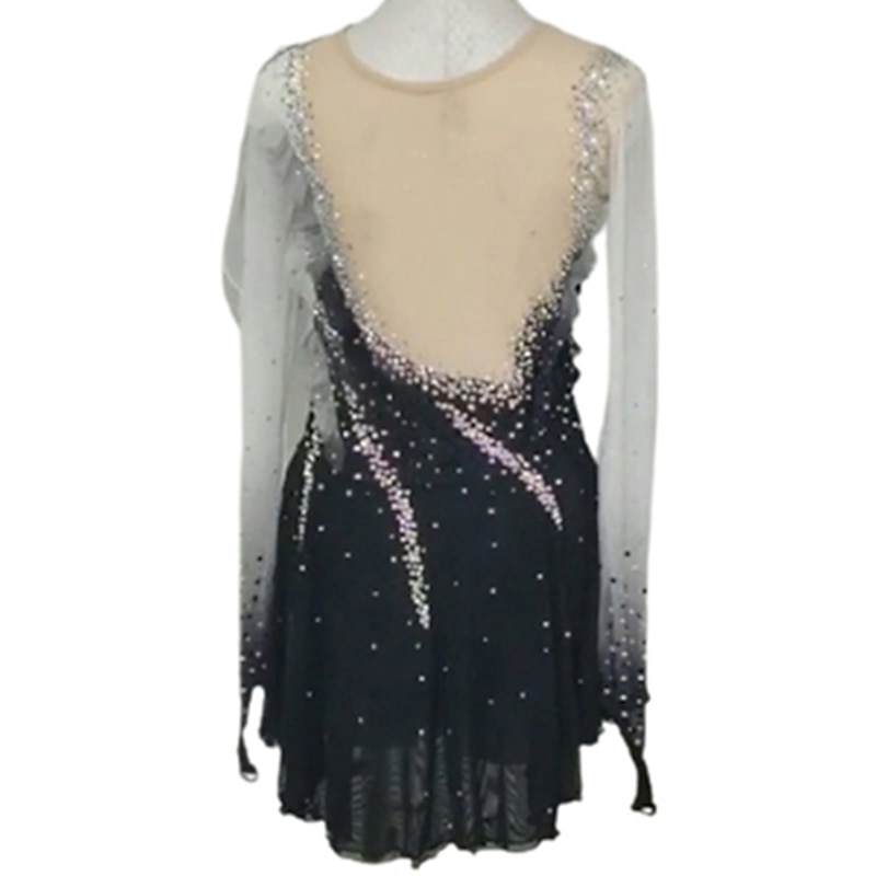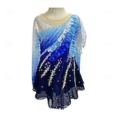 More information about Figure Skating Dress Women's Girls' Ice Skating Dress Blue+Green Black Patchwork Glitter Mesh Spandex High Elasticity Practice Competition Skating Wear Handmade Crystal / Rhinestone Long Sleeve Ice