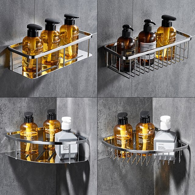 Bathroom Shelf for Wash Supplies, Bath Fixture, New Design Creative Contemporary Modern, Wall Mounted 304Stainless Steel, Triangle Rectangle 1pc 6