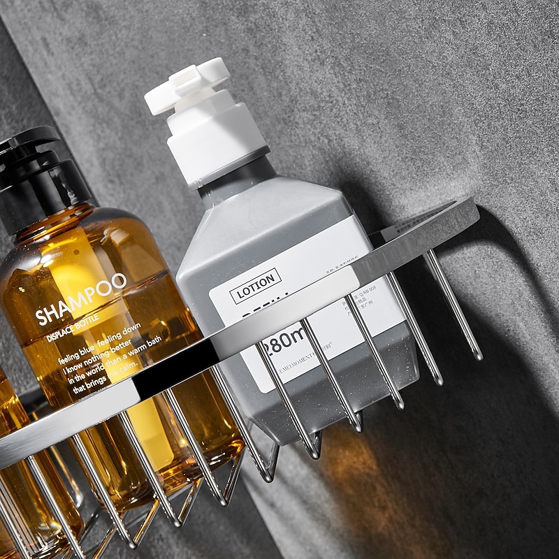 Bathroom Shelf for Wash Supplies, Bath Fixture, New Design Creative Contemporary Modern, Wall Mounted 304Stainless Steel, Triangle Rectangle 1pc 5