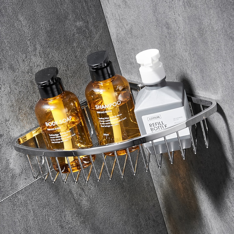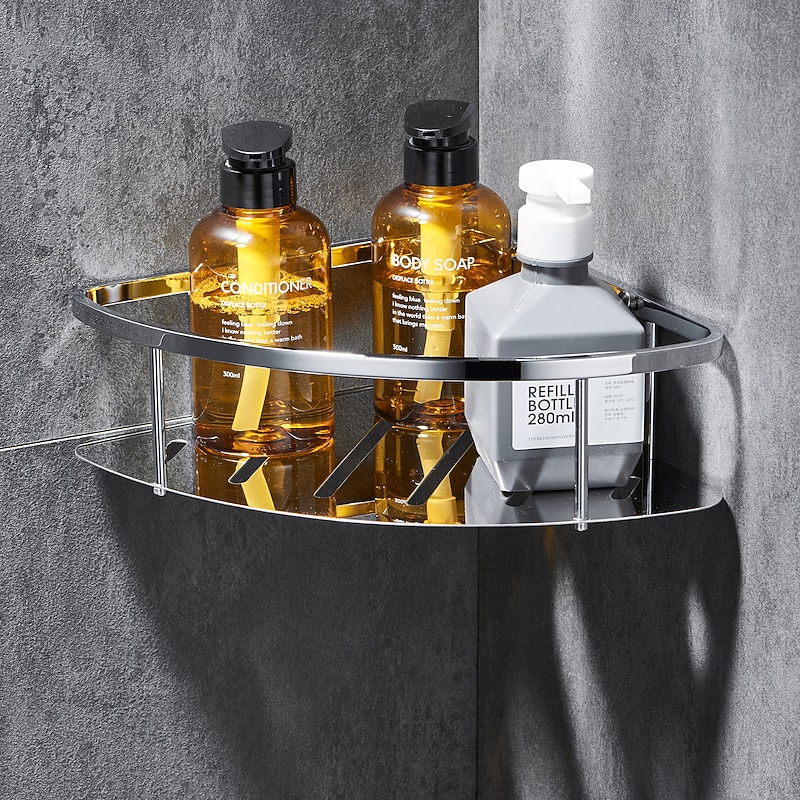 Bathroom Shelf for Wash Supplies, Bath Fixture, New Design Creative Contemporary Modern, Wall Mounted 304Stainless Steel, Triangle Rectangle 1pc 7