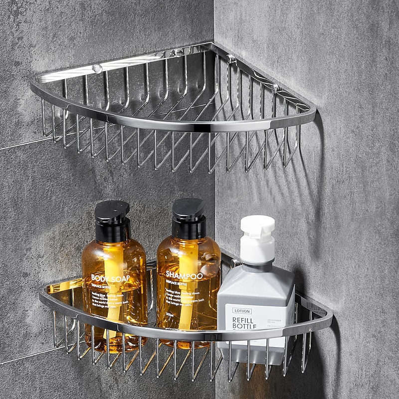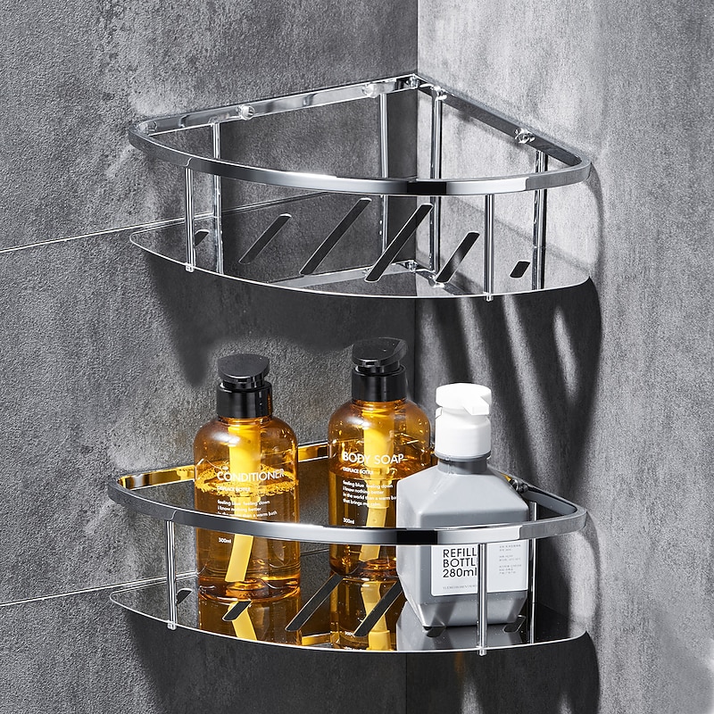 Bathroom Shelf for Wash Supplies, Bath Fixture, New Design Creative Contemporary Modern, Wall Mounted 304Stainless Steel, Triangle Rectangle 1pc 1