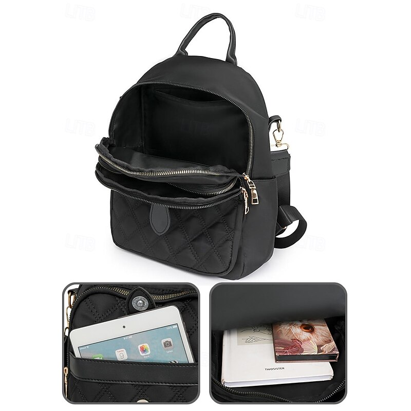 HOT ! Women's Waterproof Quilted Nylon Backpack - Stylish Lightweight Casual Bag with Top Handle and Multiple Pockets for School, Work, Travel and Daily Use