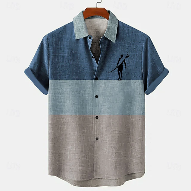 HOT ! Men's Surfing Linen Shirt Summer Hawaiian Shirt Button Up Shirt Short Sleeve Hawaiian Resort Vacation Holiday Beach Wear Summer Spring Turndown Collared Shirts Blue Green