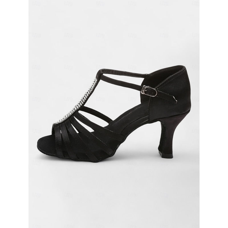 Highlights [Fabric] : Crafted from high-quality satin, these womenβs Latin dance shoes boast a soft suede sole that ensures a smooth glide on the dance floor. The soft tan satin fabric gives the shoes a luxurious texture and cozy feel, making them ideal for extended wear during dance sessions or special events. [Design Highlights] : These shoes stand out with their elegant open-toe design and chic satin straps, offering a contemporary look. The rhinestone T-strap adds a touch of glamour and sparkle, while the adjustable ankle strap provides a secure and personalized fit. The flare heel, standing at 2 inches (5 cm), perfectly balances elegance and stability. [Style] : These dance shoes feature a flattering low heel, combining comfort with style, making them suitable for party or evening occasions. The open-toe design ensures breathability and sophistication, perfect for showcasing intricate footwork in Latin dances like Samba, ChaCha, and Rumba. [Occasions] : Perfect for ballroom dancing, salsa, or formal occasions, these shoes add a touch of flair and elegance to any ensemble. Whether itβs a lively salsa night or a grand ballroom event, these shoes offer the perfect blend of comfort and style for a variety of settings. [Size Range] : Available in sizes US5 to US10, it is recommended to select one size larger than your usual fit for optimal comfort. The versatile size range ensures a suitable fit for most adults, providing both style and functionality for dance enthusiasts. Perfect for everyday use. top-grade materials and excellent craftsmanship ensure long-lasting durability.