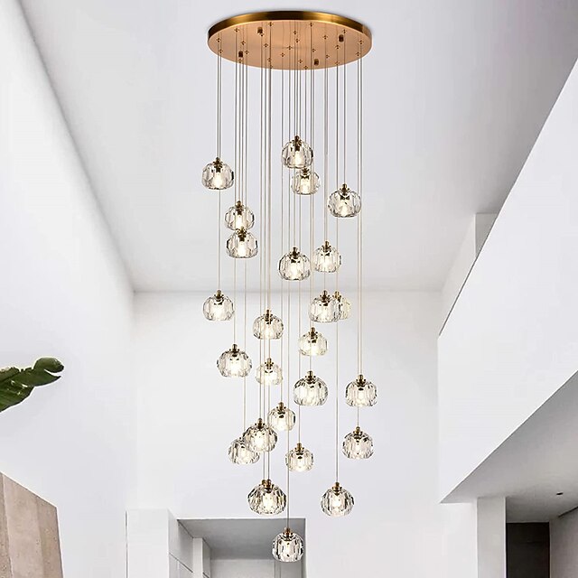 Crystal Chandelier LED Modern Pendant Light Raindrop Ceiling Light Crystal Ball Lighting Fixture 36 Lights for Staircase Living Room Hotel Hallway Foyer Entryway 110-240V 25