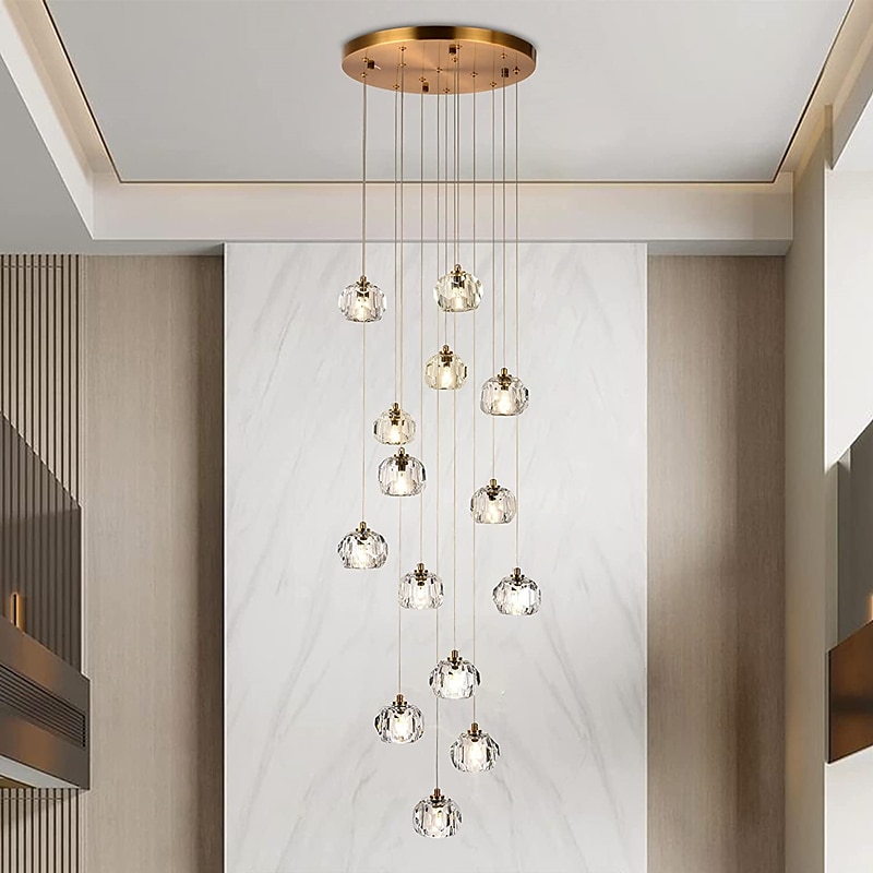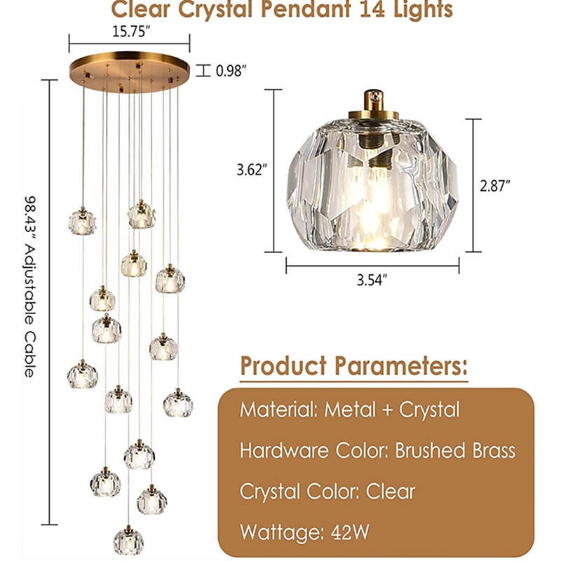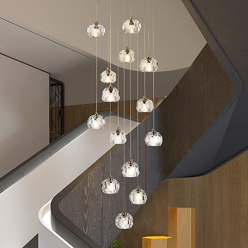 Crystal Chandelier LED Modern Pendant Light Raindrop Ceiling Light Crystal Ball Lighting Fixture 36 Lights for Staircase Living Room Hotel Hallway Foyer Entryway 110-240V 14