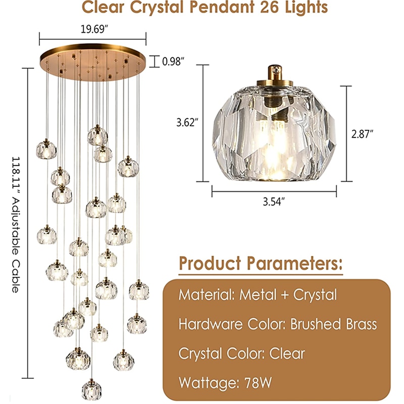 Crystal Chandelier LED Modern Pendant Light Raindrop Ceiling Light Crystal Ball Lighting Fixture 36 Lights for Staircase Living Room Hotel Hallway Foyer Entryway 110-240V 26