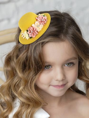 Bohend Mini Fascnator Hat Flower Hair Clip Girls Cute Tea Party Hats Women Accessory Yellow 6